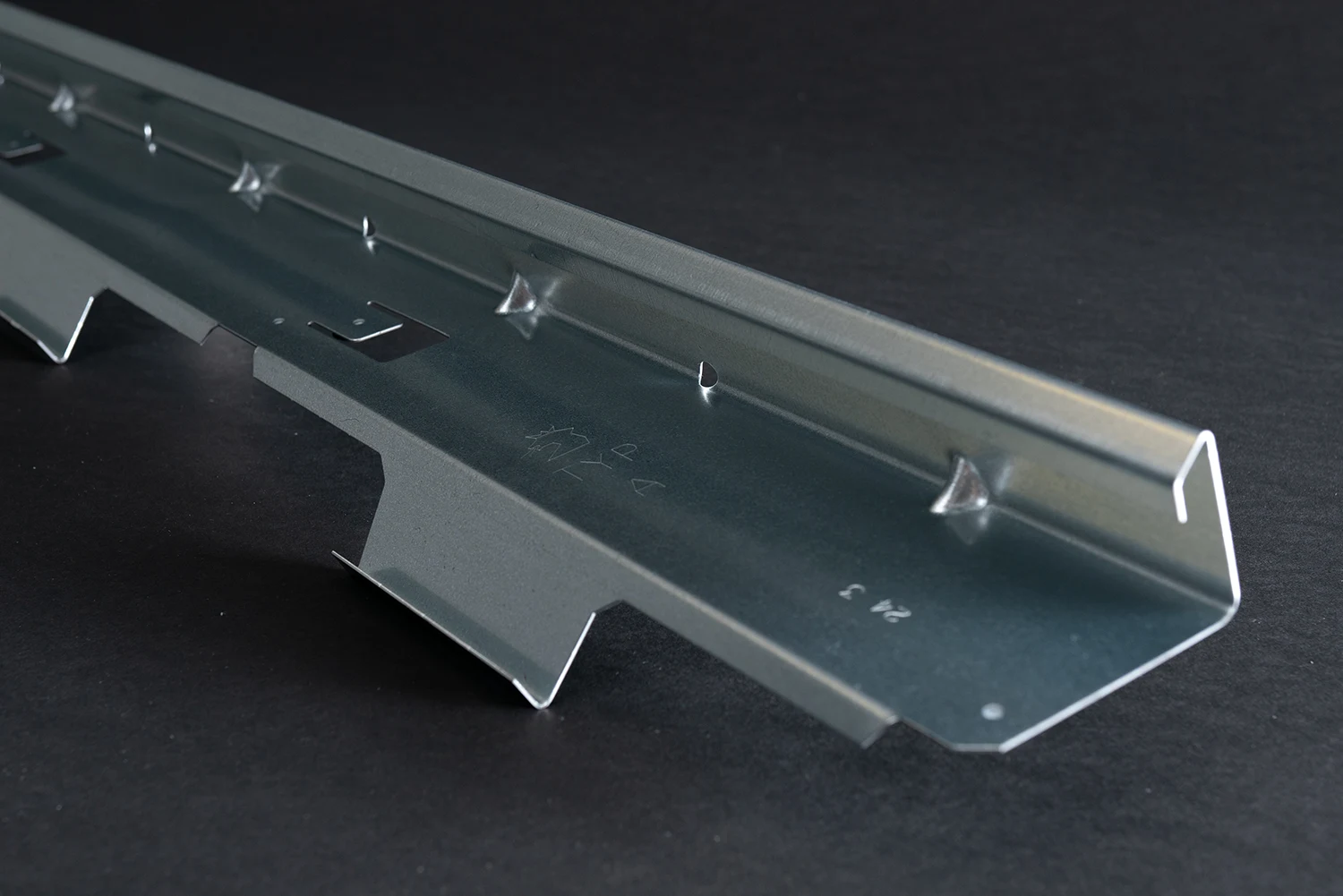 Das GS Schneeprofil Typ A ist mit oder ohne Befestigung erhältlich. Der Typ A hat 3 fixe Eiskrallen sowie 6 Stück werkseitig aufgebrachte EPDM-Zellkautschukdichtungen und 5 Verstärkungssicken an der Bugkante pro Schneeprofil.